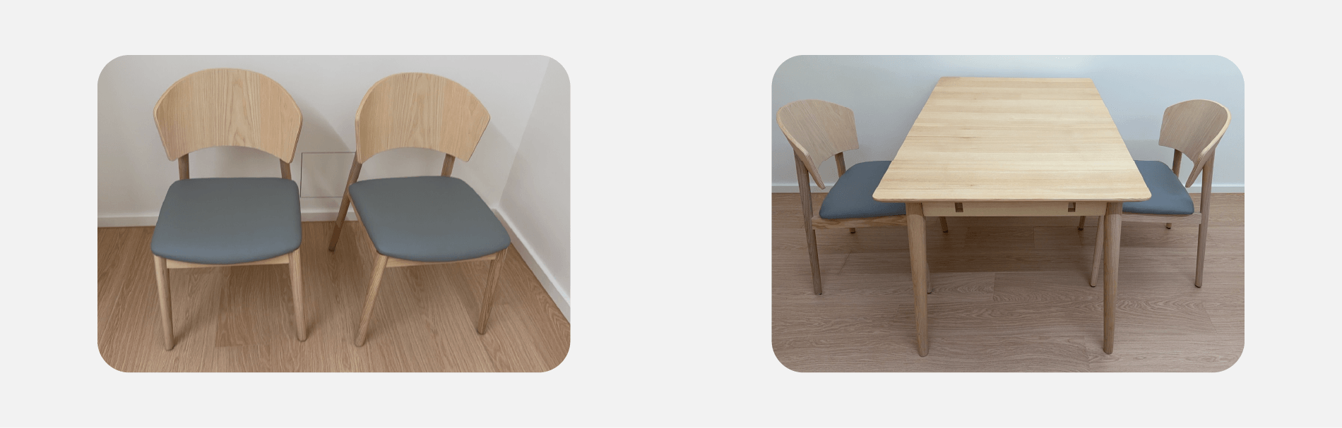 桌腳導角細節設計,完美容納進四支宮崎椅,不讓空間白白浪費。
